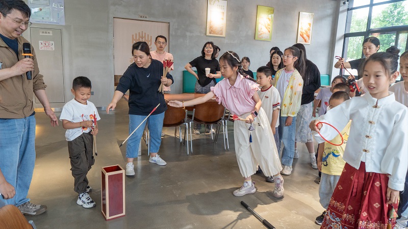 包完粽子,充满趣味的亲子游戏环节接踵而至。踢毽子、投壶、套圈比赛让现场气氛达到了高潮。孩子们奋勇争先,为了斩获战利品全力以赴。现场加油声、欢呼声此起彼伏,大家都沉浸在欢乐的游戏氛围中,亲子间的默契与感情也在游戏中得到了进一步的升华。
