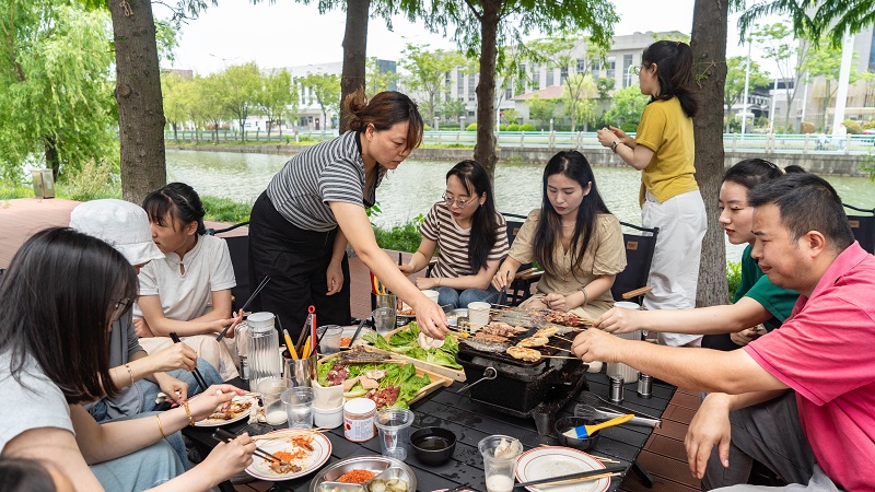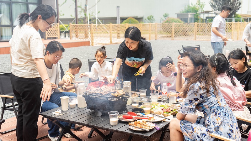 经过一上午的忙碌,终于迎来了亲子共享午餐时刻。大家围坐在苏小麦的水岸边,开启了一场自给自足的烧烤盛宴。孩子们主动帮忙传食材、递调料,家长们则熟练地翻转着烤串,不一会儿,空气中便弥漫着诱人的香气。孩子们大快朵颐地吃着烤串,脸上洋溢着满足的笑容,欢声笑语在整个苏小麦上空回荡。